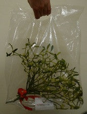 What to do with the mistletoe after it is sold? Some of our customers told us about this problem they encountered. We have acted and sourced some transparent carrier bags that are an ideal size for mistletoe bunches. Add to your order if you think it will be handy.